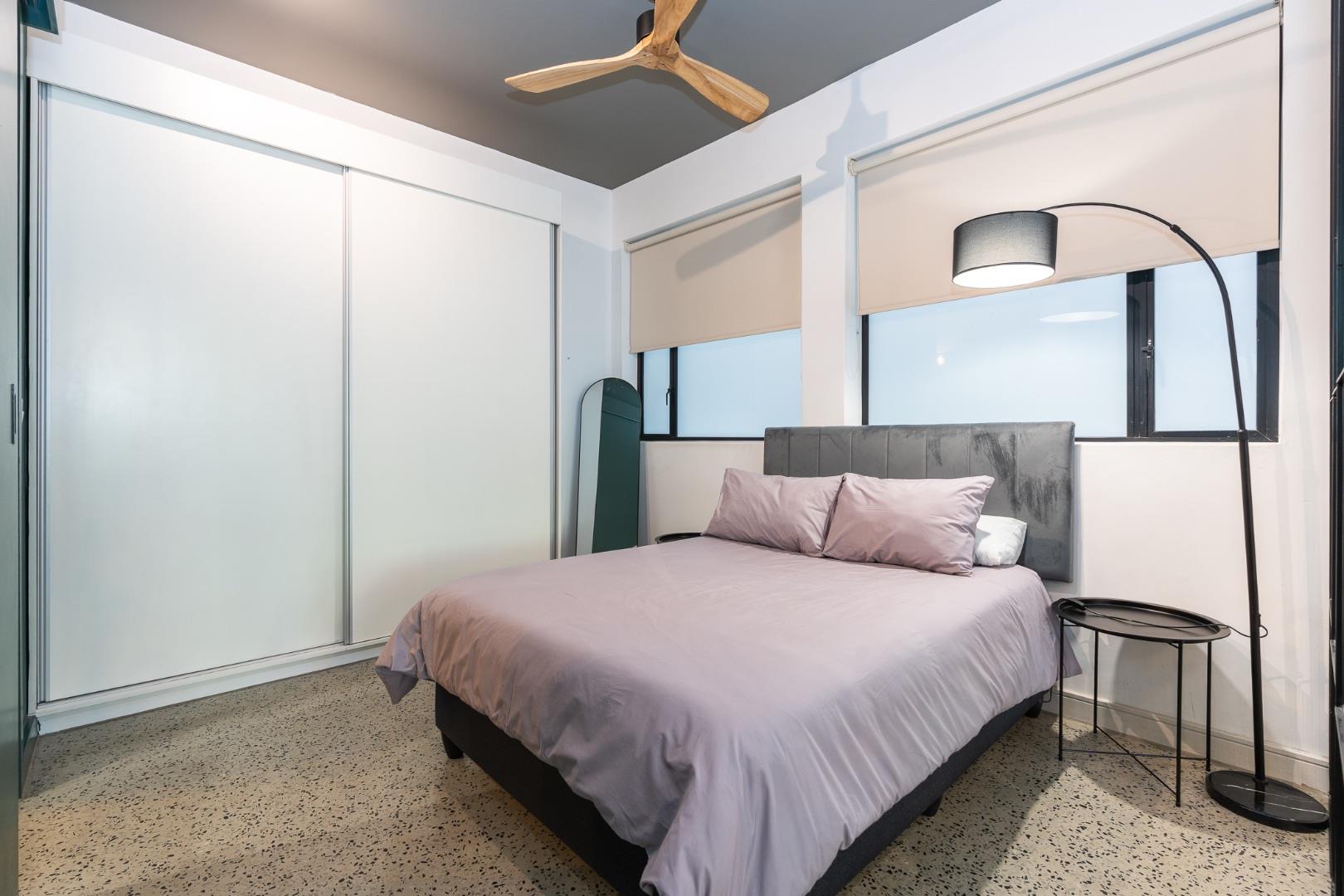 Temperature control is well designed with roller blinds, air conditioning, and ceiling fans.