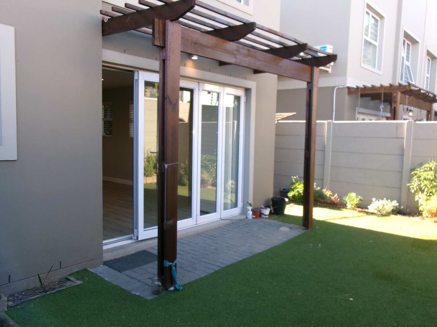 Enhance your indoor-outdoor living experience with stacking doors that open up to a private backyard.