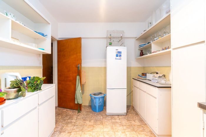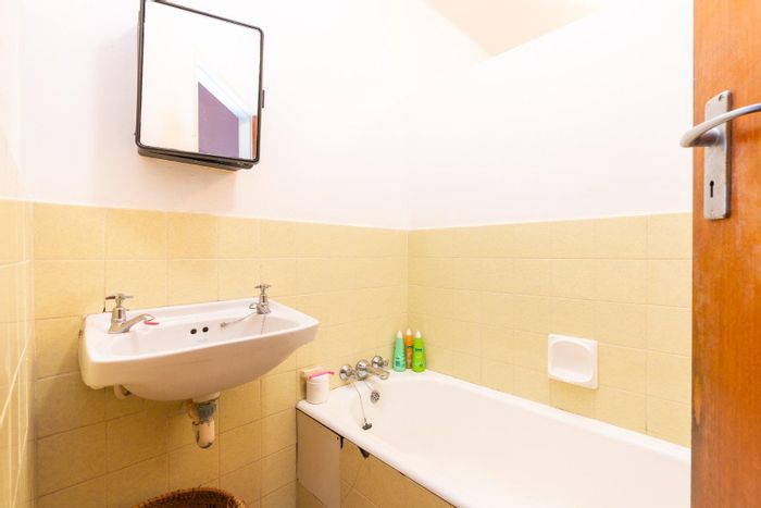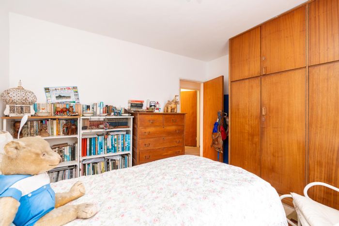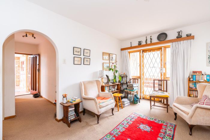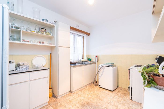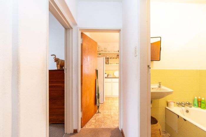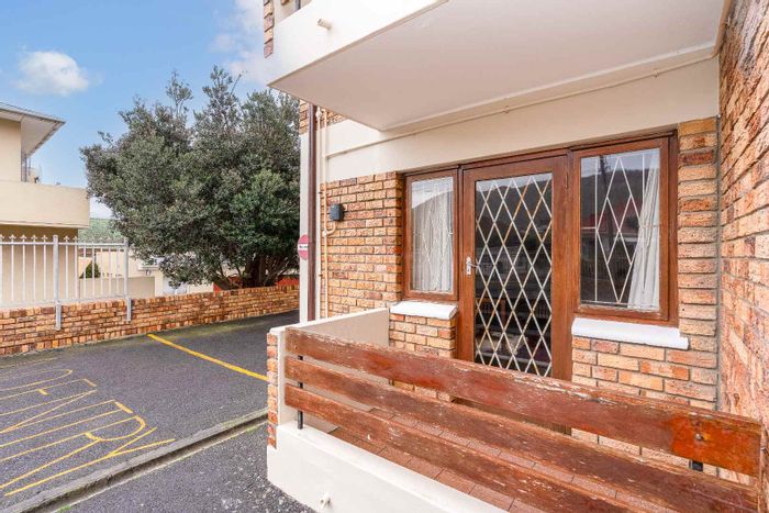 Peaceful Fish Hoek two-bedroom apartment with sunlit enclosed balcony, original parquet floors and roomy 18m² garage — great potential for modernisation in a family-friendly beachside neighbourhood.